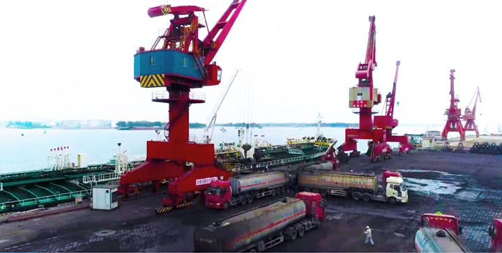 2021年元月,集團下屬中油王港公司、港口經(jīng)營公司作業(yè)區(qū)內(nèi)裝載車輛穿梭如流、門吊裝卸不停,一派繁忙景象。