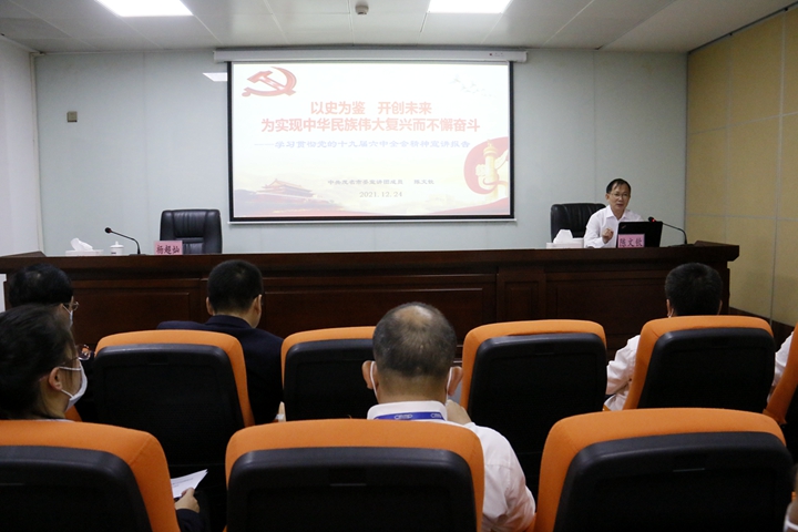 為深入學(xué)習(xí)貫徹黨的十九屆六中全會精神, 引導(dǎo)廣大黨員干部把思想和行動統(tǒng)一到全會精神上來,持續(xù)推動黨史學(xué)習(xí)教育走深走實,12月24日,集團舉辦學(xué)習(xí)貫徹黨的十九屆六中全會精神宣講報告會。茂名市委黨史學(xué)習(xí)教育宣講團成員陳文欽應(yīng)邀作專題報告。集團黨委委員、副總裁楊超燦主持會議。集團黨委班子成員和集團機關(guān)、各下屬企業(yè)黨員干部職工代表60余人參加報告會。