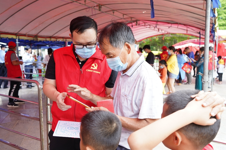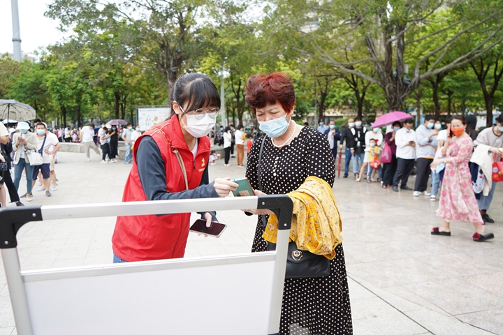 3月27日,為保障群眾核酸采樣秩序正常,根據(jù)上級(jí)安排,集團(tuán)黨委組織黨員志愿服務(wù)隊(duì)火速前往南香公園采樣點(diǎn)支援全員核酸檢測(cè)工作,讓黨旗在防控疫情斗爭(zhēng)第一線高高飄揚(yáng)。 集團(tuán)黨員志愿者們按計(jì)劃時(shí)間提前一小時(shí)到采樣點(diǎn),向醫(yī)務(wù)人員虛心學(xué)習(xí),了解檢測(cè)服務(wù)工作中最常見(jiàn)的問(wèn)題及解決方法,確保能夠?yàn)楝F(xiàn)場(chǎng)群眾提供最迅速準(zhǔn)確的志愿服務(wù)。采樣開(kāi)始后,集團(tuán)黨員志愿服務(wù)隊(duì)隊(duì)員們奔走忙碌于人流中,有序地疏導(dǎo)人流、維護(hù)秩序,督促?gòu)V大群眾遵守公共場(chǎng)所戴口罩、不聚集、保持1米線等規(guī)定。服務(wù)中,志愿者們?yōu)槿罕姶鹨山饣、消除顧慮、安撫緊張情緒,并指引和幫助群眾們打開(kāi)核酸檢測(cè)小程序做好信息錄入等工作。