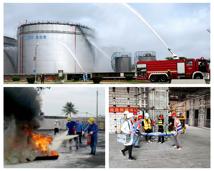 各單位負(fù)責(zé)人親自指揮、貼近實(shí)際、協(xié)同演練是本次演練的特點(diǎn)。中油王港公司針對(duì)油罐受雷擊著火和碼頭卸船軟管泄漏進(jìn)行綜合演練,并邀請電白區(qū)消防救援大隊(duì)聯(lián)合演練,場面逼真,貼近實(shí)戰(zhàn);油品碼頭工程項(xiàng)目部聯(lián)合博賀海事處、電城鎮(zhèn)衛(wèi)生院進(jìn)行水上作業(yè)防淹溺專項(xiàng)演練,醫(yī)護(hù)人員現(xiàn)場講解落水人員急救常識(shí)和心肺復(fù)蘇搶救法,較好普及應(yīng)急知識(shí);港務(wù)中心項(xiàng)目部針對(duì)高處墜落進(jìn)行專項(xiàng)演練,組織得力,取得實(shí)效;港口經(jīng)營公司開展港口設(shè)施保安及消防應(yīng)急演練,反恐措施得當(dāng);化工倉儲(chǔ)項(xiàng)目結(jié)合高溫天氣,開展受限空間作業(yè)人員中暑演練,提升應(yīng)急技能;東閣嶺礦石項(xiàng)目部開展高處落石專項(xiàng)演練,達(dá)到預(yù)期演練目標(biāo);濱海物業(yè)公司開展食品中毒演練,處置迅速有效;油品碼頭安裝工程和化工碼頭項(xiàng)目開展防臺(tái)防汛演練,提高“三防”應(yīng)急處置能力。