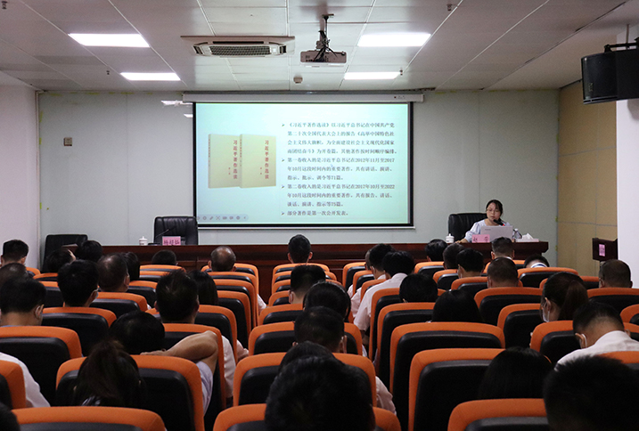 宣講會上,趙芳從黨的理論創(chuàng)新成果的時代背景、馬克思主義中國化時代化的新飛躍和實現(xiàn)中華民族偉大復(fù)興的行動指南三個維度,為學(xué)好用好《習(xí)近平著作選讀》作了全面深入的輔導(dǎo)。報告內(nèi)涵豐富、分析透徹、視野開闊,具有很強的指導(dǎo)性、針對性和啟發(fā)性。 會議指出,《習(xí)近平著作選讀》第一卷、第二卷出版發(fā)行,是黨和國家政治生活中的一件大事,是全黨全國各族人民深入學(xué)習(xí)貫徹習(xí)近平新時代中國特色社會主義思想的權(quán)威教材。認真學(xué)習(xí)《習(xí)近平著作選讀》,對于我們深刻領(lǐng)悟“兩個確立”的決定性意義,增強“四個意識“、堅定“四個自信”、做到“兩個維護”,自覺在思想上政治上行動上同以習(xí)近平同志為核心的黨中央保持高度一致,奮力推進中國式現(xiàn)代化的廣東實踐,具有十分重要的意義。 會議強調(diào),集團全體黨員干部要把學(xué)習(xí)《習(xí)近平著作選讀》作為堅持用習(xí)近平新時代中國特色社會主義思想凝心鑄魂的重大政治任務(wù)。一要在學(xué)深悟透上做習(xí)近平新時代中國特色社會主義思想的堅定信仰者。堅持把學(xué)習(xí)《習(xí)近平著作選讀》與學(xué)習(xí)貫徹黨的二十大精神結(jié)合起來,與即將開展的主題教育結(jié)合起來,與學(xué)習(xí)貫徹習(xí)近平總書記視察廣東重要講話、重要指示精神結(jié)合起來,全面深化對習(xí)近平新時代中國特色社會主義思想的理解。二要在宣傳宣講上做習(xí)近平新時代中國特色社會主義思想的積極傳播者。領(lǐng)導(dǎo)干部堅持以上率下,深入基層一線,全面宣傳闡釋習(xí)近平新時代中國特色社會主義思想,帶動全體職工不斷增強對黨的創(chuàng)新理論的政治認同、思想認同、理論認同、情感認同。三要在知行合一上做習(xí)近平新時代中國特色社會主義思想的忠實實踐者。把《習(xí)近平著作選讀》作為案頭卷、工具書,在全面系統(tǒng)學(xué)習(xí)的基礎(chǔ)上,堅持聯(lián)系實際、立足崗位,在深學(xué)細照篤行中提高理論素養(yǎng)、堅定理想信念、升華覺悟境界、增強能力本領(lǐng),努力把學(xué)習(xí)成效轉(zhuǎn)化為干事創(chuàng)業(yè)的強大動力,推動集團高質(zhì)量發(fā)展。 集團黨委領(lǐng)導(dǎo)班子成員、集團各黨支部黨員代表和機關(guān)全體職工約70人參加宣講會。