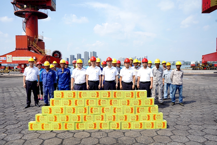 近日,茂名港集團(tuán)黨委副書記、總裁肖炳璋,茂名港集團(tuán)黨委委員、副總裁、工會主席楊超燦分別帶隊到集團(tuán)下屬港口經(jīng)營公司碼頭作業(yè)現(xiàn)場、中油王港公司庫區(qū)、博賀新港區(qū)重點項目施工現(xiàn)場等處“送清涼”,向奮斗在一線的職工傳達(dá)集團(tuán)黨委、集團(tuán)工會的問候與關(guān)懷,并為他們發(fā)放充足的解暑飲料。