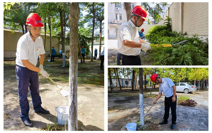 活動當(dāng)日,黨員干部們分工明確,快速投入到辦公園區(qū)環(huán)境衛(wèi)生治理,對園區(qū)樹木進(jìn)行蟲害消殺,穿上“石灰白大褂”。他們不怕臟、不怕累,一起撿拾垃圾、清掃雜物,對主干道、籃球場等地的雜草雜物進(jìn)行徹底清理,有條不紊地對綠化帶進(jìn)行剪綴,切實消除了園區(qū)的“視覺污染”,提升了辦公園區(qū)環(huán)境衛(wèi)生質(zhì)量。 |