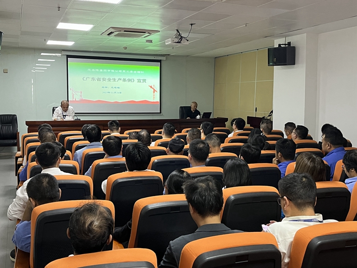 為深入學(xué)習(xí)貫徹新修訂的《廣東省安全生產(chǎn)條例》(以下簡稱《條例》),推動《條例》宣貫走深走實、取得實效。11月16日,集團組織開展《條例》學(xué)習(xí)宣貫培訓(xùn),集團安環(huán)委成員,機關(guān)各部室職工,各下屬企業(yè)負責(zé)人、安全生產(chǎn)分管領(lǐng)導(dǎo)、安全生產(chǎn)管理人員、班組長及一線員工共約60人參加。