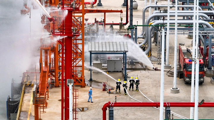 此次演練是集團在博賀新港區(qū)投產(chǎn)前最接近實操的實戰(zhàn)演練,旨在提高企業(yè)處理泊位緊急事故的應(yīng)變和整體協(xié)調(diào)能力,提高應(yīng)急人員對泊位突發(fā)事故的應(yīng)急指揮、操作聯(lián)動和救援水平。在各方的共同努力下,經(jīng)過1小時緊張有序的應(yīng)急處置,成功控制油料泄漏事故,圓滿完成演練任務(wù),標(biāo)志著博賀新港區(qū)油品碼頭和化工碼頭投產(chǎn)運營工作已完成關(guān)鍵節(jié)點。 陳力表示,此次演練增強了轄區(qū)碼頭企業(yè)、船舶企業(yè)及相關(guān)單位的防污染意識和聯(lián)合作戰(zhàn)能力,有效落實了港口單位污染防治主體責(zé)任,將有力推動港口運輸生產(chǎn)和海洋環(huán)境保護協(xié)調(diào)發(fā)展。 李昱祺表示,本次演練充分展示了集團下屬子公司在應(yīng)急指揮、操作聯(lián)動和救援水平等方面的綜合管理能力,為后續(xù)投產(chǎn)運營提供了寶貴經(jīng)驗。下一步,集團將繼續(xù)做好人員培訓(xùn)、常態(tài)化應(yīng)急演練等工作,進(jìn)一步提高協(xié)調(diào)作戰(zhàn)能力,為茂名港域平安港口建設(shè)貢獻(xiàn)力量。 此次演練還得到了茂名石化北山嶺消防中隊、廣東海安水運技術(shù)服務(wù)有限公司、茂名昌利船舶有限公司、茂名眾和海上防污工程有限公司等單位的大力支持與協(xié)助。