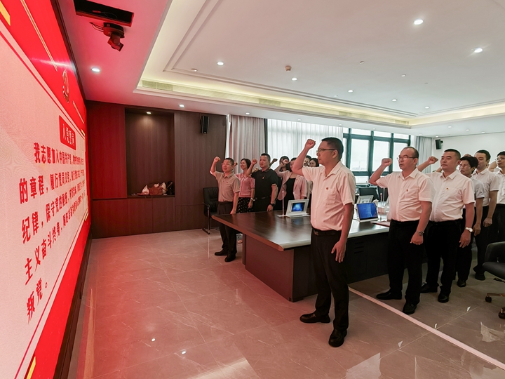 為深入學(xué)習(xí)貫徹習(xí)近平新時代中國特色社會主義思想,進(jìn)一步加強(qiáng)黨建引領(lǐng),推動黨建與業(yè)務(wù)深度融合,7月15日,茂名港集團(tuán)機(jī)關(guān)黨支部與中國人民銀行茂名市分行宏觀審慎與金融市場管理科黨支部、國家外匯管理局茂名市分局黨總支聯(lián)合開展了主題黨日活動。中國人民銀行茂名市分行二級調(diào)研員嚴(yán)青,集團(tuán)黨委委員、副總裁楊超燦以及雙方黨支部書記、黨員代表共20余人參加活動。