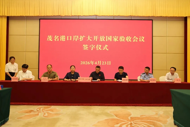 茂名港口岸擴(kuò)大開放國家驗(yàn)收會(huì)議簽字儀式現(xiàn)場。
